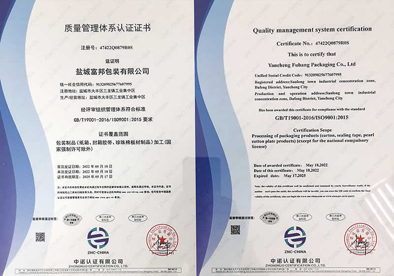 江鹽城富邦包裝有限公司創(chuàng)辦于2011年,地處環(huán)境優(yōu)美的鹽城大豐區(qū)三龍鎮(zhèn)工業(yè)集中區(qū),緊臨331省道和226省道,交通十分便利。是集研發(fā)、生產(chǎn)、經(jīng)營為一體的中型私營企業(yè),主要生產(chǎn)各種規(guī)格內(nèi)、外銷中高檔瓦楞紙箱、彩色印刷、封箱膠帶、紙托盤、珍珠棉、EPS(泡沫)成型、免模、大板裁片的專業(yè)工廠,年產(chǎn)瓦楞紙箱達(dá)400萬平方米、封箱膠帶260萬平方米、EPS泡沫10萬立方米以上。工廠占地8000平方米,生產(chǎn)廠房近3000平方米,擁有進口1020秋山四色膠印機,生產(chǎn)工藝先進,檢測手段齊全,品質(zhì)服務(wù)保證,本公司已通過ISO9001:2015國際質(zhì)量體系認(rèn)證,并嚴(yán)格持續(xù)遵照體系認(rèn)證及商檢部門要求組織生產(chǎn)和經(jīng)驗管理。。。。。。